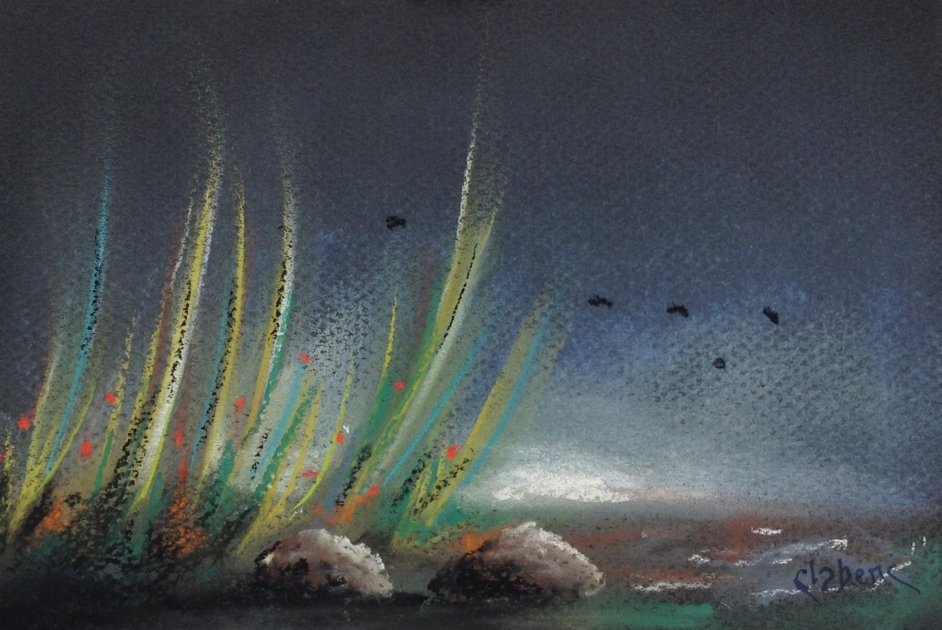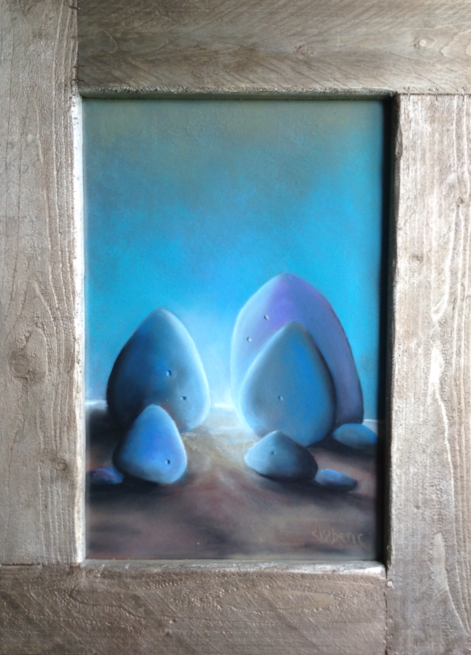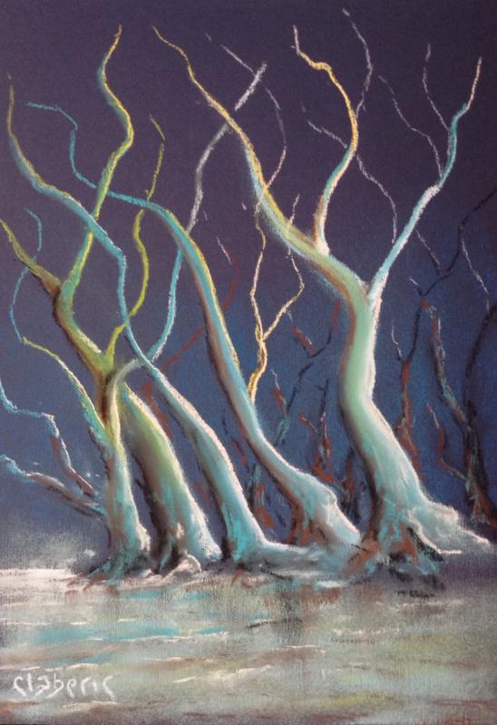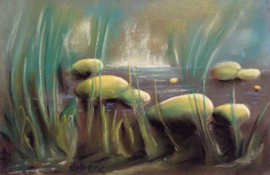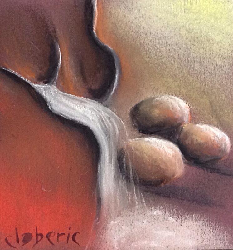 Tel un art primitif, le pastel sec, appliqué exclusivement aux doigts, fait revivre les souvenirs d'enfance.
